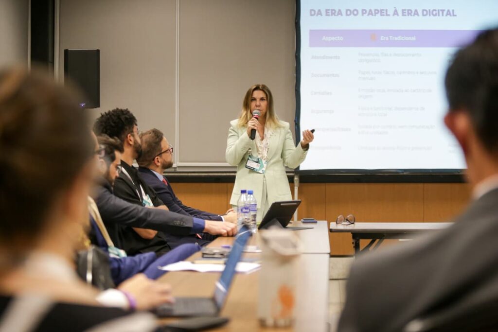 Durante a apresentação, Fernanda Abud Castro destacou a trajetória da transformação digital dos Cartórios brasileiros, um processo que consolidou o país como referência mundial em governança, interoperabilidade e segurança jurídica. “Saímos da era do papel e chegamos à era da inteligência artificial. Hoje, o cidadão pode acessar serviços notariais e registrais de qualquer lugar do Brasil com a mesma validade jurídica, transparência e confiança que sempre caracterizaram os Cartórios”, afirmou.